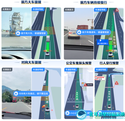 该地图导航软件基于北斗卫星定位信息、路测超高清数据、人工智能交通大模型、实时道路交通状况数据和用户出行行为等,挖掘出了十大事故易发生场景,并根据用户实时位置和未来行程,推送车道级安全预警信息,守护用户行车安全。