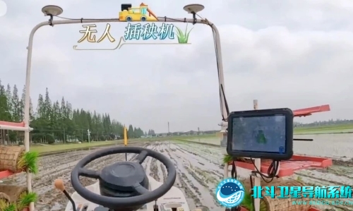 在江苏无锡严家桥村,村民在田边轻触屏幕,就能控制无人农机在田间插秧。安装了北斗定位终端的无人插秧机,插起秧来又快又直。