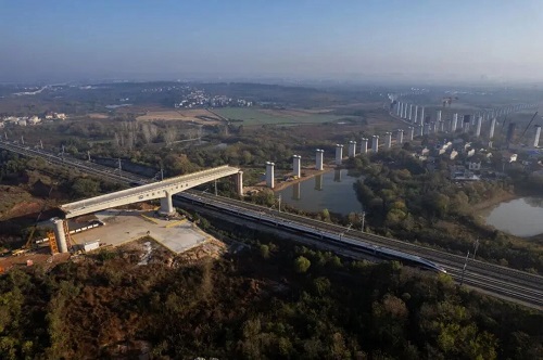 该转体桥为新建合肥至武汉高速铁路(以下简称“合武高铁”)长江新区至武汉天河段关键工程,属于沪渝蓉高速铁路的一个区段,由中国铁路武汉局集团有限公司武汉工程建设指挥部建设管理、中铁七局承建。线路位于武汉市黄陂区境内,正线全长约18公里。