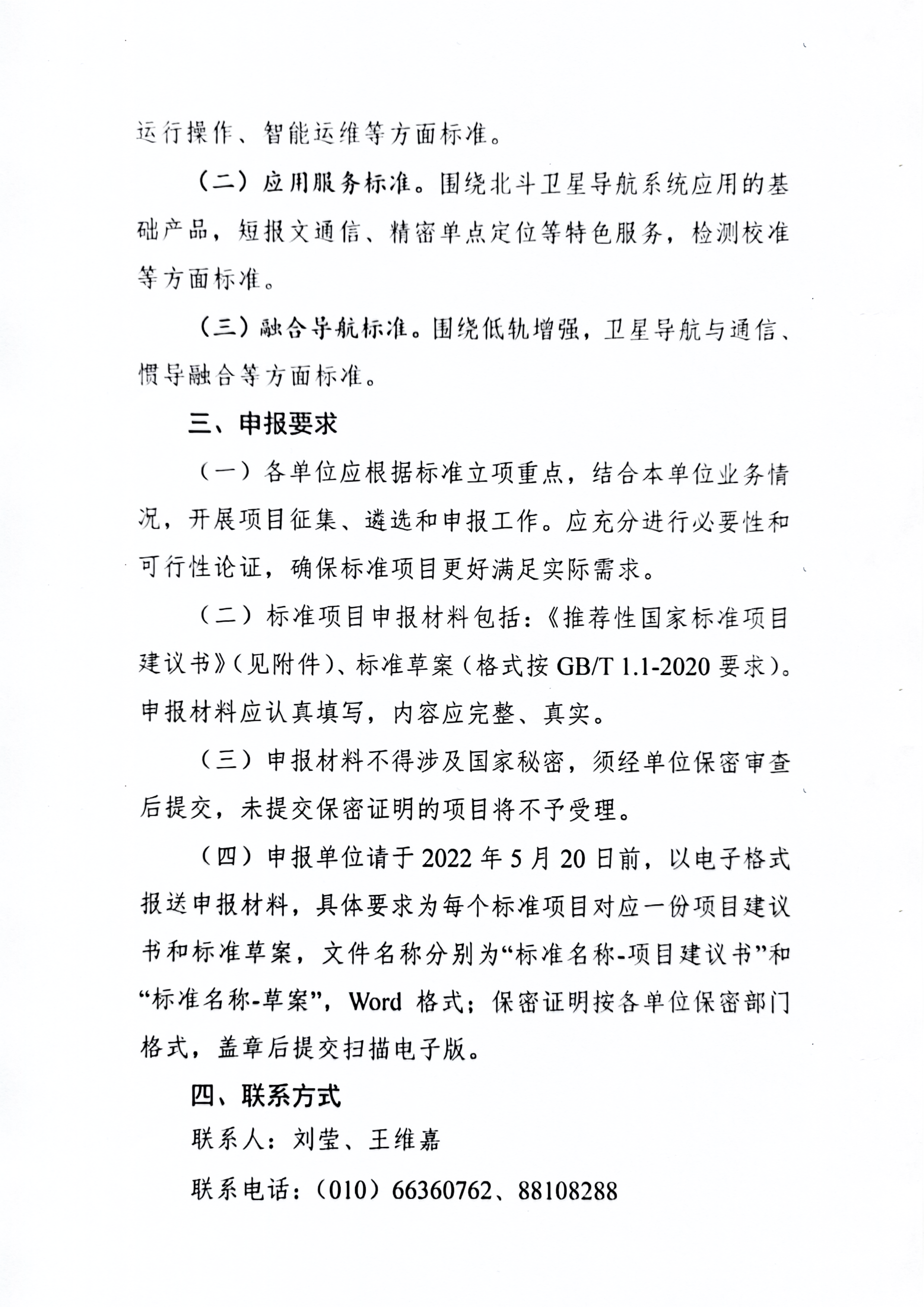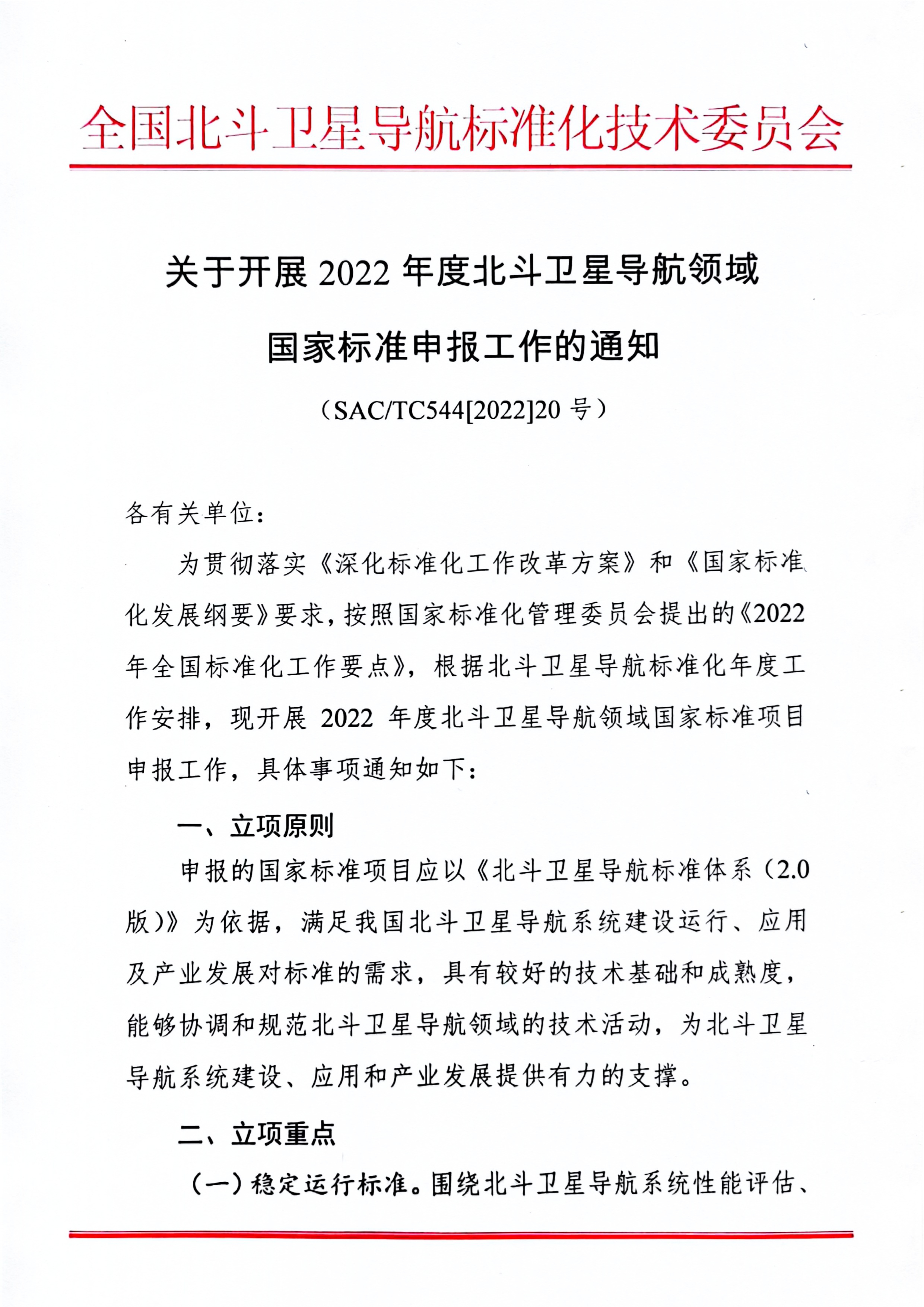 关于开展2022年度北斗卫星导航领域国家标准申报工作的通知