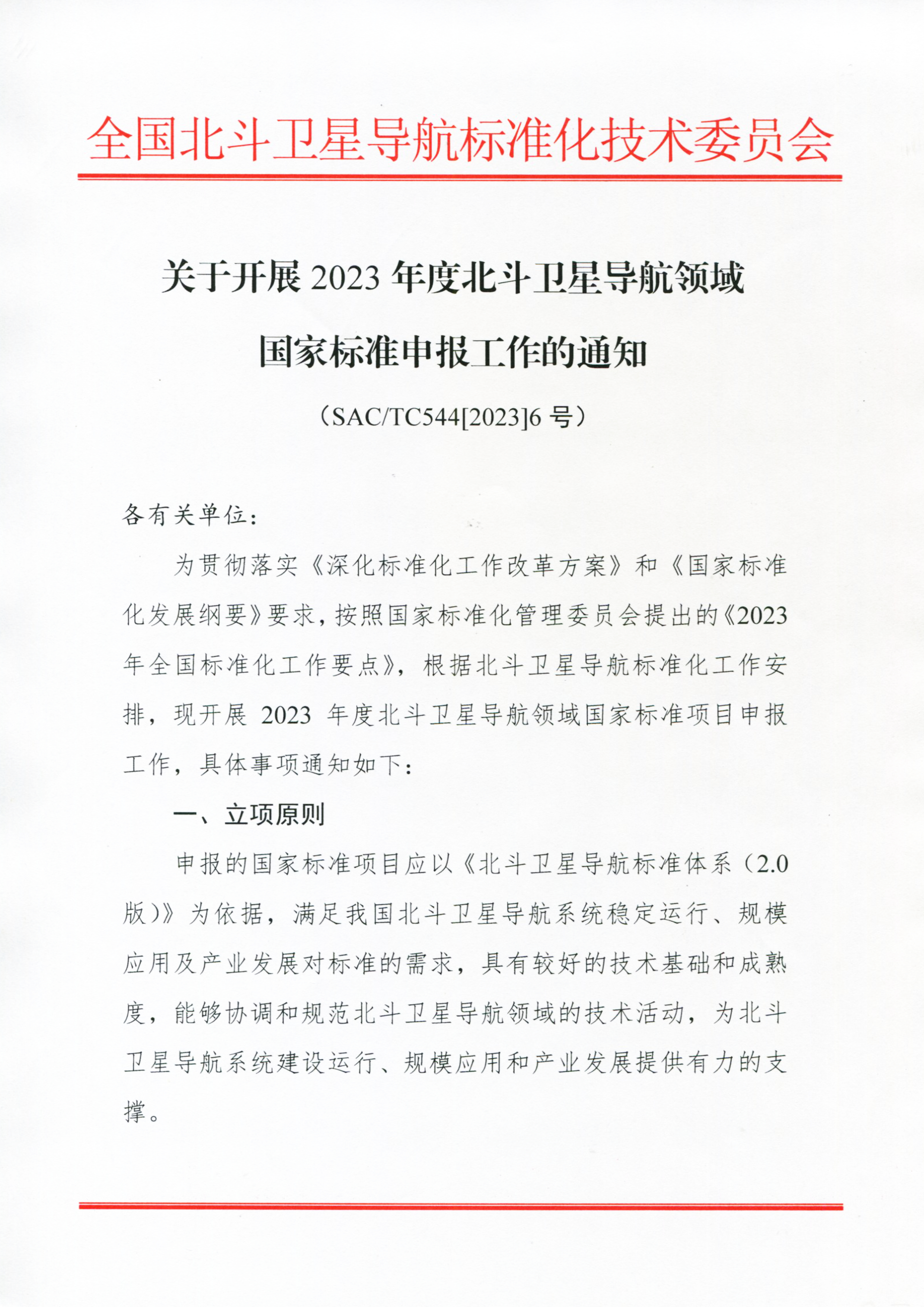 官方|关于开展2023年度北斗卫星导航领域国家标准申报工作的通知